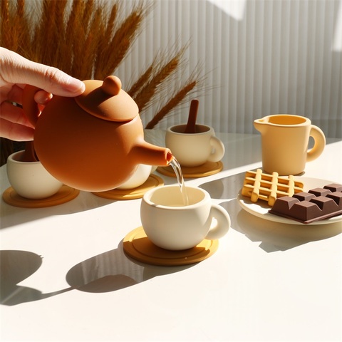 أحدث وصول جديد مجموعة 17 قطعة التعليمية سيليكون لعبة طفل إبريق الشاي الحلوى عالية الخصر المرأة اللعب المنزل لعب بالجملة الهدايا