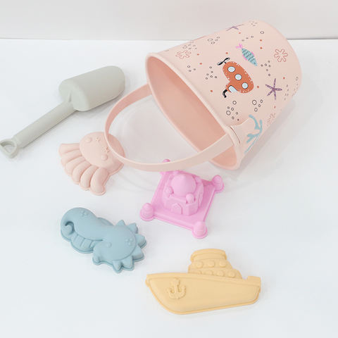Heat Transfer Printing Ocean Animal Marine Life CE Silicone Baby Beach Toys Kit Sands Shovel Castle Toys Kids Summer Toy Set