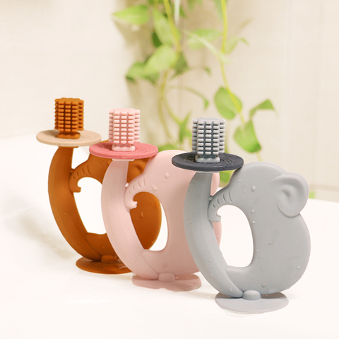 PAISEN Elephant Baby Infant Toddler Handhold Training Toothbrush Soft Soothing Silicone Teether Toys Sensory Silicone Chew Toy